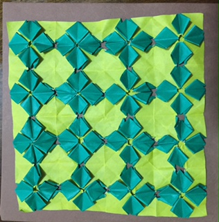 あじさい花壇16輪は、25cm四方の紙を使用しています。