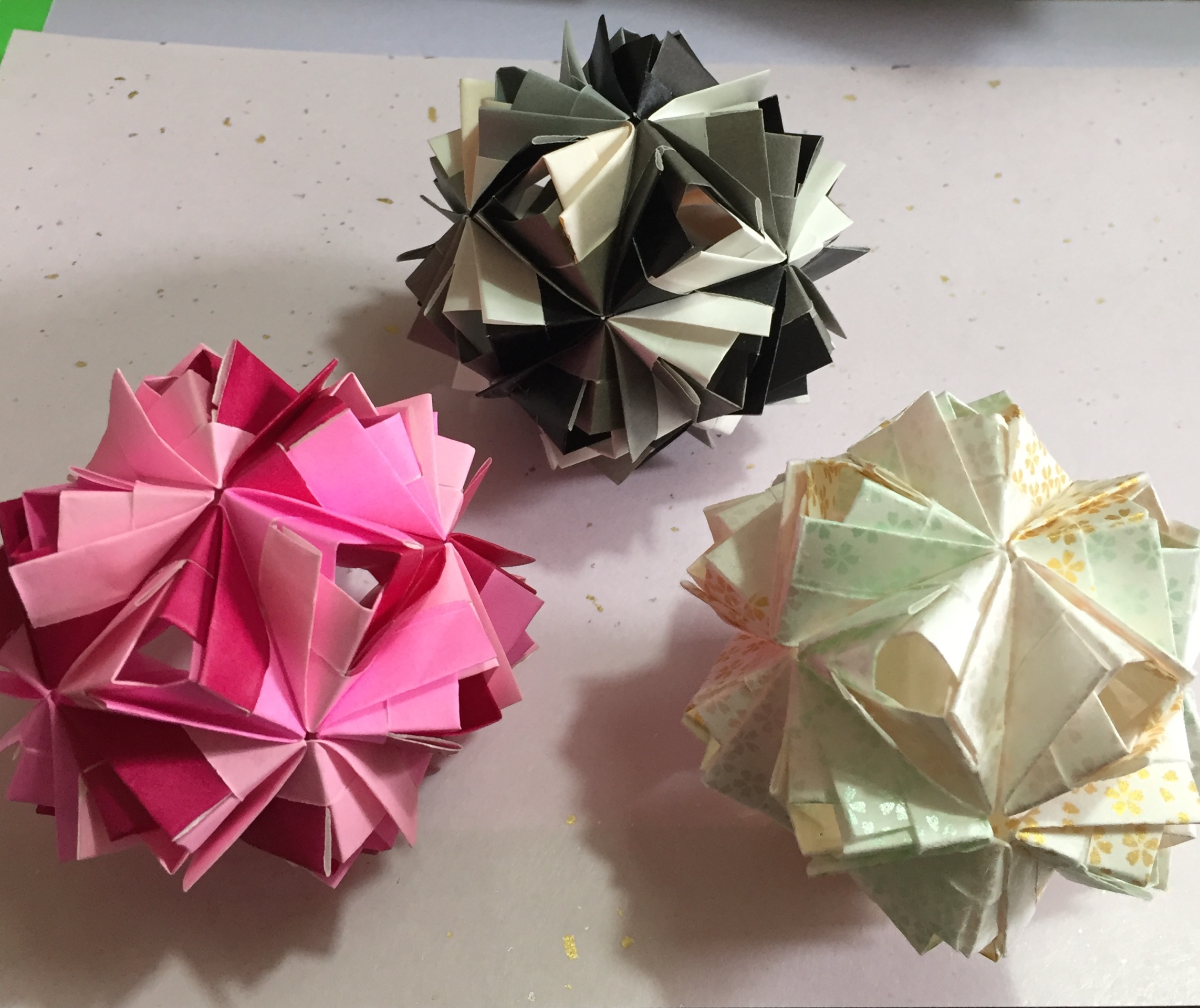 7.5㎝角の紙 12枚を使用して 折って 組んでいくと