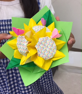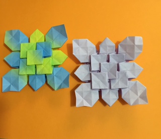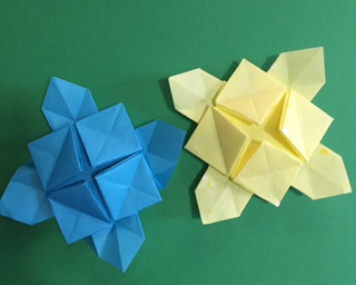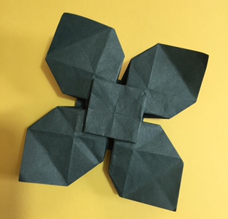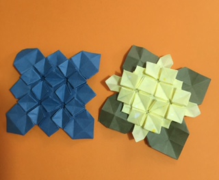 あじさい折りの発展で、本位田奈保美さんが考案された折紙であることを