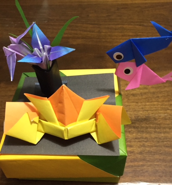 菖蒲はトーヨー花のおりがみに付いていた折り図を見て作りました。