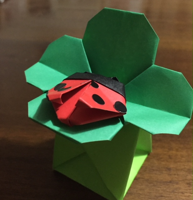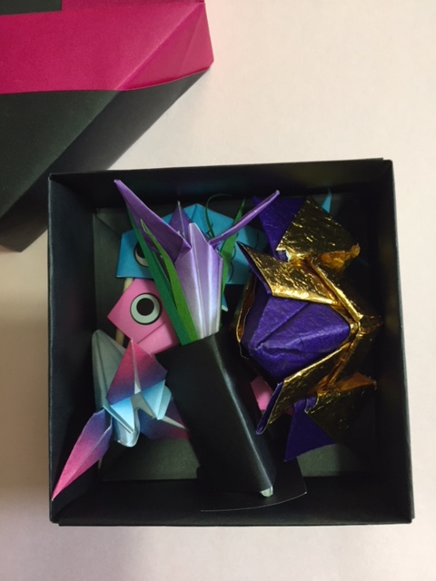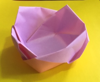 下の作品は15cmの紙で、約8,5cm四方の箱ができました。