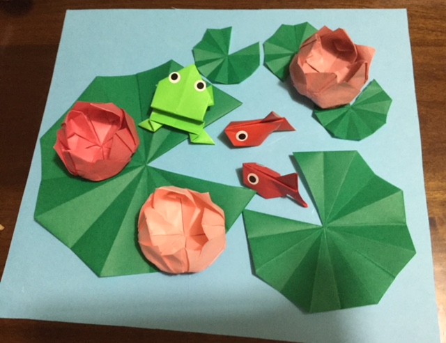 スイレン、キンギョ、カエルはインターネットのおりがみくらぶのサイトを見て