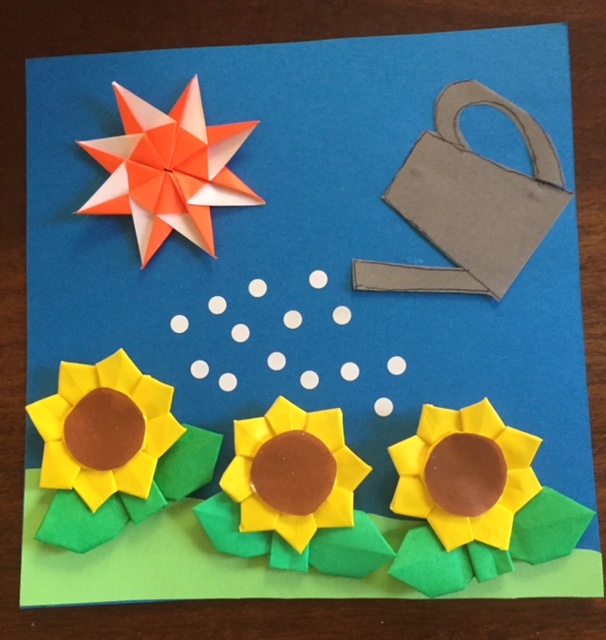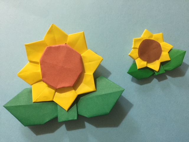 丹羽 兌子さん作 ひまわりを折って、フレームに入れました。