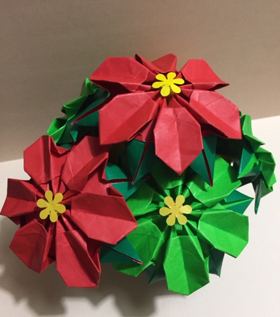 月刊おりがみNo.515、7月号に掲載の 住田則子氏作 「花のくす玉」 を